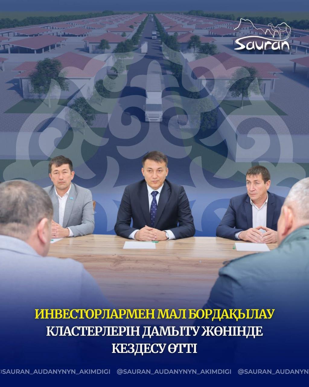 ✔️Бүгін Сауран ауданының әкімі Мақсат Таңғатаров ауыл шаруашылығы саласына инвестиция салуға ниетті ресми инвесторлармен кездесу өткізді. Кездесудің басты мақсаты — ауданда мал шаруашылығын дамыту, заманауи бордақылау алаңдарын салу және инвестициялық жобаларды жоспарлы түрде іске асыру.
